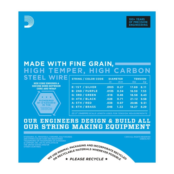 D Addario EXL110+ sähkökitaran kielisarja 0105-048. Nikkelipäälysteiset teräskielet.