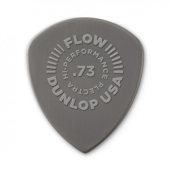 Dunlop Nylon Flow on plektra, joka yhdistää nylonin kuuluisan lämpimän soinnin ja napakan attackin Flow-mallien aerodynaamiseen muotoon. Nylon Flow -plektra on hyvin mielenkiintoinen, koska nylonia käytetään usein akustisen kitaran kanssa. Terävämmän kärjen ansiosta kyseessä on plektra, joka toimii erinomaisen hienosti tarkempaan soittamiseen niin akustisella kuin sähkökitarallakin.Flown pyöristetyt, terävään kärkeen päättyvät reunat saavat plektran liukumaan kielen yli mukavan liukkaasti. Plektran kulmaa säätämällä attack myös muuttuu melkoisesti. Nylon Flown reunat ovat pyöristetyt myös kolmiulotteisessa tasossa, joten plektra puree kielten punoksiin juuri sopivalla tavalla.