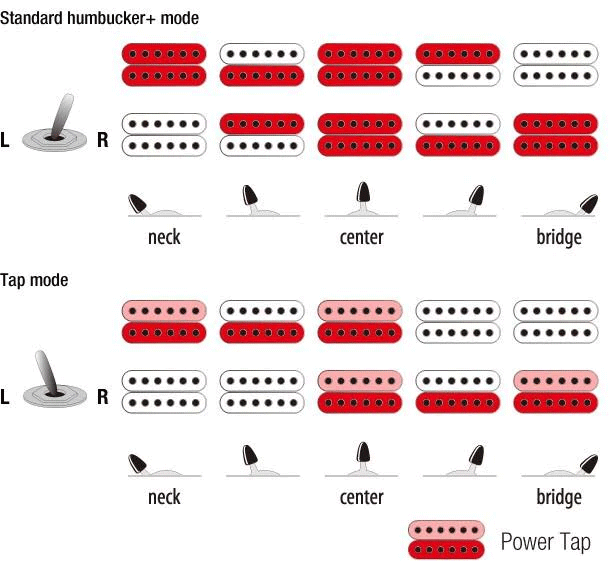 Ibanezin dyna-MIX10 -kytkentä mahdollistaa mikrofonien asettamisen kymmeneen eri konfiguraatioon. Operiointi on helppo 5-asentokytkimen ja koko kytkennän muuttavan 2-asentoisen Alter Switch -kytkimen avulla.