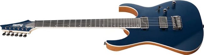 Ibanez Prestige RG5121R-DBF -mallissa on pimeässä hohtavat sivudotit, teräksiset (stainless steel) nauhat sekä Fishman Fluence -mikrofonit.