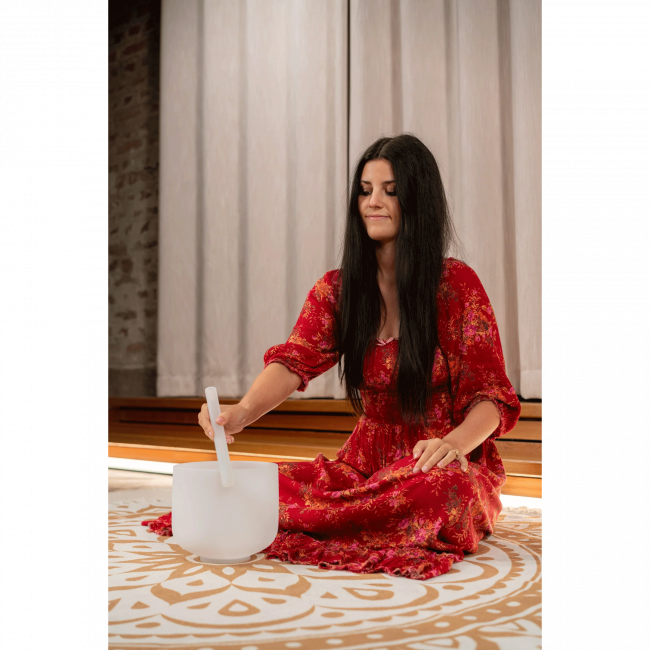8" Root Chakra -äänimalja soi C5 nuotissa. Maljan soinnin on tarkoitus edistää elinvoimaa, itseluottamusta, tasaisuutta, päättäväisyyttä ja ruoansulatusta.