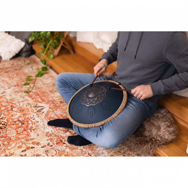 Meinl Sonic Energy Octave Steel Tongue Drum Lasered Floral on upea kielirumpu, jonka kaksiosaiset kielet soivat kahdessa oktaavissa. Rummun keskiössä on matalaääninen bassosävel, jota kahdeksan kieltä ymäröivät.Kaksioktaaviset kielet tekevät rummun soinnista hyvin rauhoittavan ja vivahteikkaan. Se soi tavallaan kuin 12-kielinen kitara, jossa matalammat kielet soivat kahdessa oktaavissa. Rummun mukana tulee kunnollinen, reppumallinen laukku ja kaksi kumipäistä mallettia.