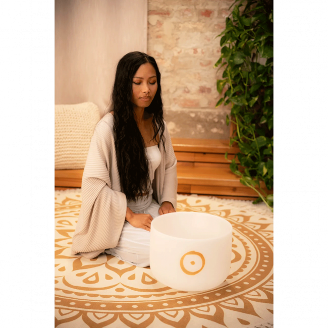 Kvartsista valmistettu kristalliäänimalja auringon taajuudella