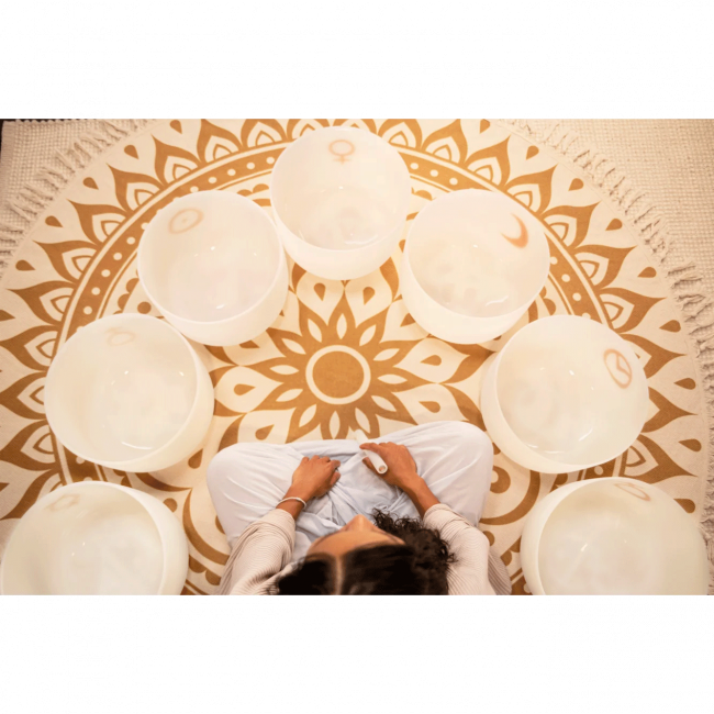 Kvartsista valmistettu kristalliäänimaljaseti, 7kpl